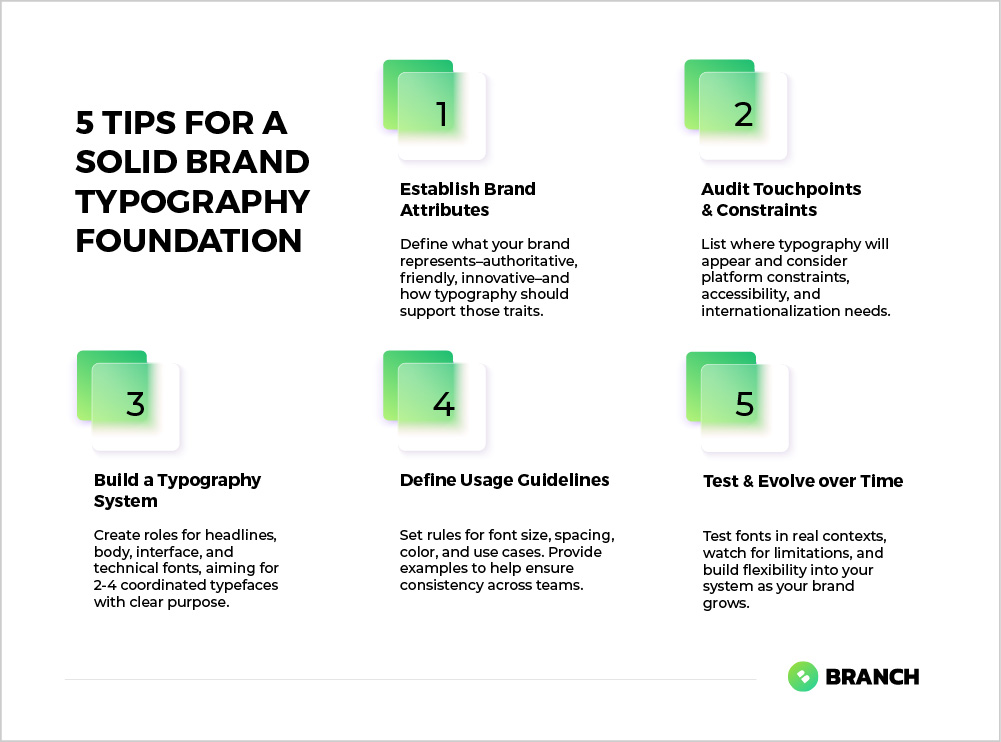 Before you open a font library, spend time articulating what your brand represents. Is your company innovative and forward-thinking, or established and trustworthy? Are you approachable and friendly, or authoritative and professional? Your typography should reinforce these attributes, not compete with them.