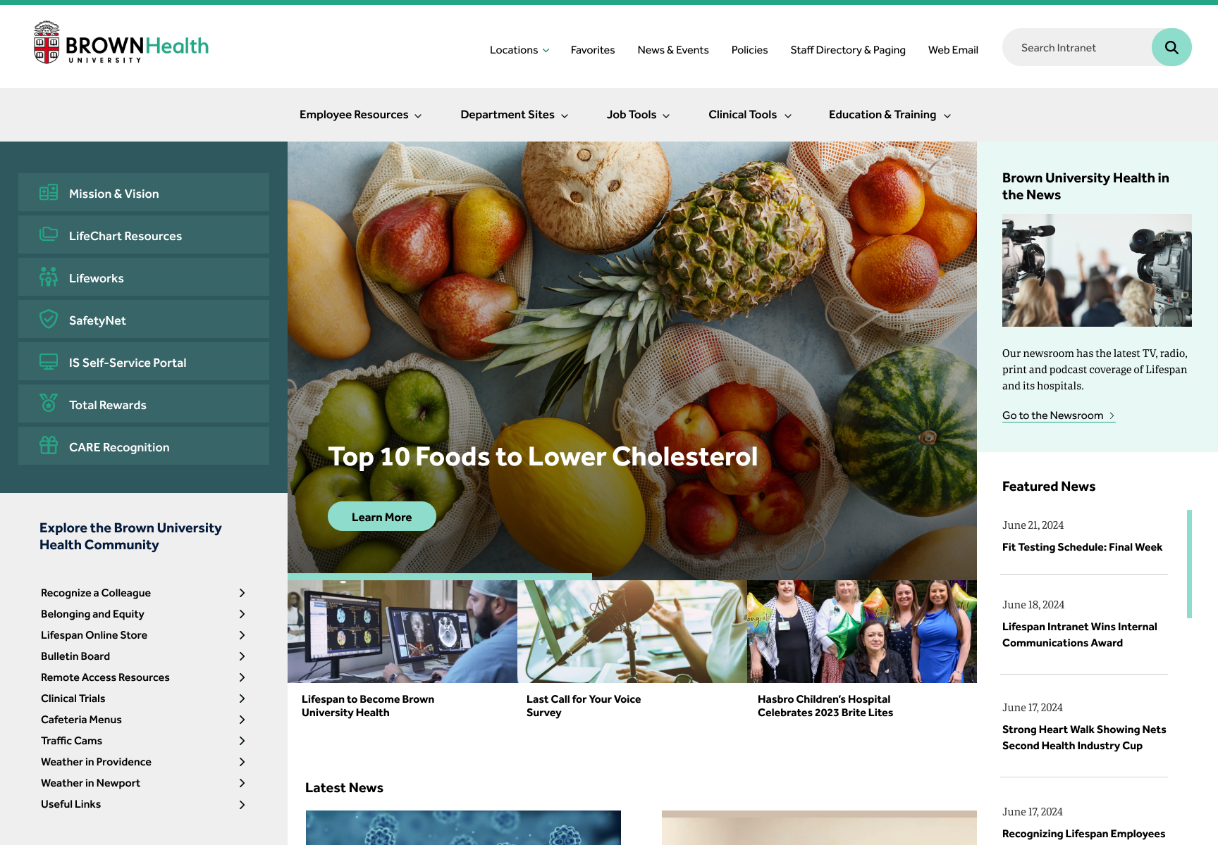 Brown University Health Intranet website for internal teams to access relevant tools and resources, and stay in the know on current news and events.